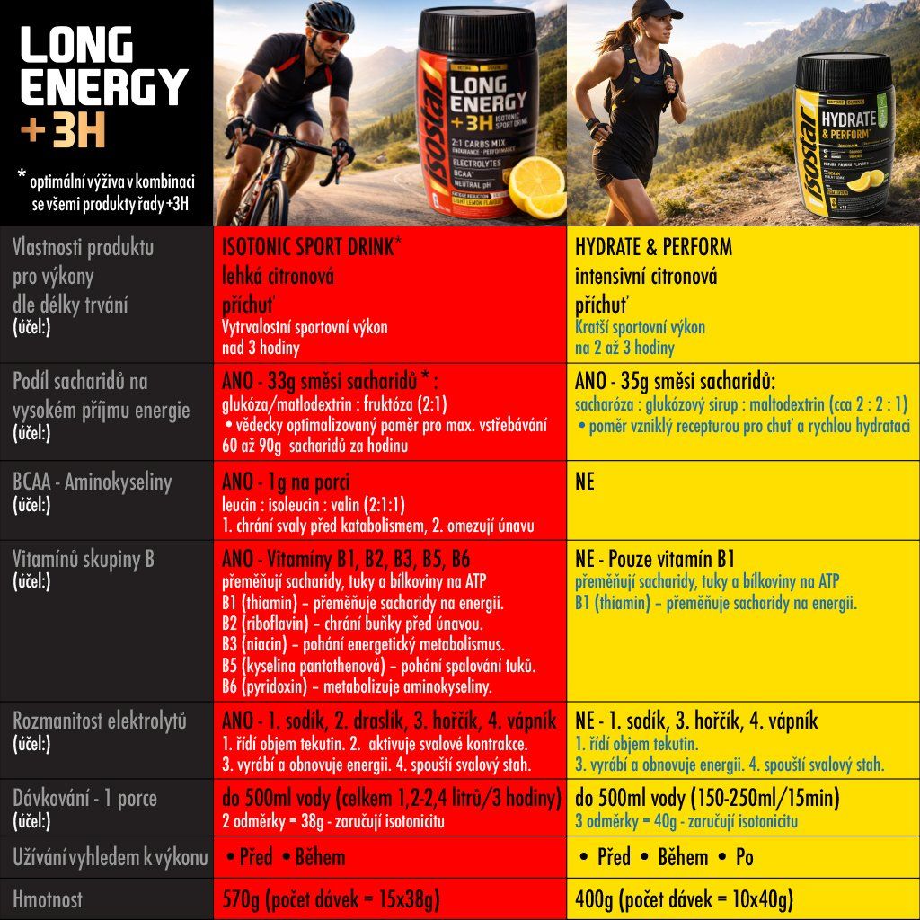 Každé tělo je jiné – a proto ISOSTAR Long Energy +3H přináší výživový plán přizpůsobený přímo vaší váze a pohlaví. Nestačí jen něco sníst a doufat. Vytrvalostní výkon nad tři hodiny vyžaduje přesné načasování, správné množství sacharidů a produkty navržené tak, aby vaše tělo mělo palivo vždy tehdy, kdy ho nejvíc potřebuje.